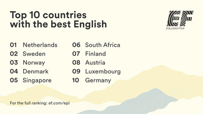 EF Education First released today the ninth annual edition of its EF English Proficiency Index(EF EPI), analyzing data from 2.3 million non-native English speakers in 100 countries and regions. This year, the Netherlands replaces Sweden to become the top scorer.