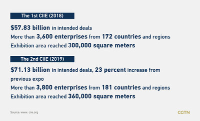 มหกรรม CIIE ซึ่งจัดขึ้นครั้งแรกในปี 2561 นำไปสู่การทำสัญญาซื้อขายสินค้าและบริการมูลค่า 5.783 หมื่นล้านดอลลาร์ ขณะที่สัญญาจากประเทศที่เข้าร่วมโครงการ Belt and Road มีมูลค่า 4.7 พันล้านดอลลาร์ ส่วนมูลค่าการซื้อขายในมหกรรม CIIE ครั้งที่สองเพิ่มขึ้น 23% สู่ระดับ 7.113 หมื่นล้านดอลลาร์